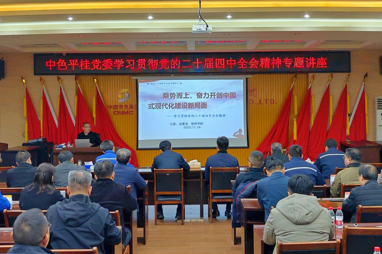 公司黨委強調,學習宣傳貫徹黨的二十屆四中全會精神是公司當前和今后一個時期的首要政治任務。各單位、部門要切實提高政治站位,持續深化學習,將思想和行動統一到全會戰略部署上來。要迅速興起學習宣傳貫徹熱潮,各級領導帶頭深入基層、車間宣講,將全會精神融入公司“十五五”發展謀劃全過程,對標對表黨中央新部署新要求,解放思想,創新求變,確保全會精神在公司落地見效。同時,要以學習宣傳貫徹全會精神為強大動力,全力抓好當前各項重點工作,沖刺四季度,堅決完成全年目標任務,奮力實現“十四五”圓滿收官,為“十五五”良好開局筑牢基礎,為集團公司高質量發展貢獻中色平桂力量。