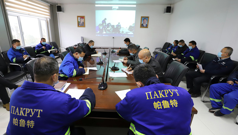 會議首先再次深入學(xué)習(xí)了集團(tuán)公司董事長奚正平關(guān)于加強境外企業(yè)常態(tài)化疫情防控工作的指示精神以及常青副總經(jīng)理關(guān)于做好海外疫情防控的工作要求。帕魯特現(xiàn)場防疫負(fù)責(zé)人介紹了當(dāng)前國際國內(nèi)及塔吉克疫情趨勢,分析了公司防疫形勢,并就當(dāng)前疫情防控工作進(jìn)行了安排。中色國礦總經(jīng)理張輝對公司疫情防控工作提出了具體要求。