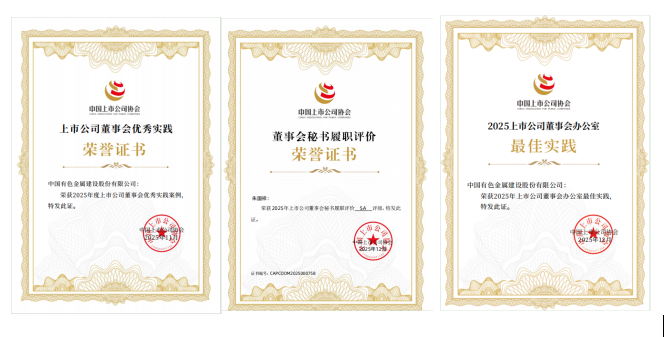近日,中色股份在中國上市公司協會組織的權威評選中連獲“上市公司董事會優秀實踐案例”“上市公司董事會秘書5A評級”(最高級)及“上市公司董事會辦公室最佳實踐案例”(最高級)三項大獎。這標志著公司從董事會領航掌舵、董事會秘書核心履職到董事會辦公室專業執行的完整治理鏈條獲得了資本市場監管機構與行業的高度評價,展現了公司治理體系和治理效能的先進性與有效性。