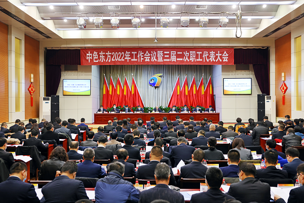 1月18日,中國有色集團出資企業(yè)中色(寧夏)東方集團有限公司(簡稱:中色東方)召開2022年工作會議暨三屆二次職工代表大會,深入學(xué)習(xí)貫徹中國有色集團年度工作會議和自治區(qū)經(jīng)濟工作會議精神,總結(jié)2021年工作,表彰年度各類先進,對重點科技攻關(guān)、深化改革推進等5個專項9個團隊進行嘉獎表彰,分析研判當(dāng)前形勢,安排部署2022年工作,動員中色東方全體干部職工,統(tǒng)一思想認識、堅定發(fā)展信心、勇毅踔厲前行,推動中色東方實現(xiàn)高質(zhì)量發(fā)展。中色東方黨委書記、董事長李春光講話,黨委副書記、總經(jīng)理楊赫作工作報告。